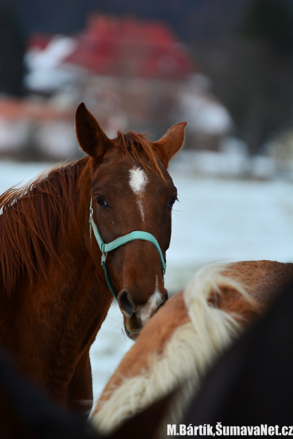 Koně v Bohumilicích přivítali první sníh